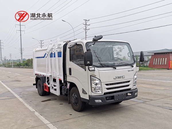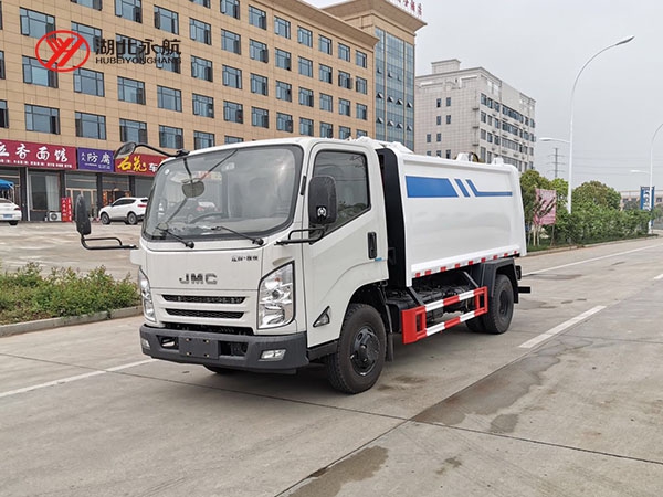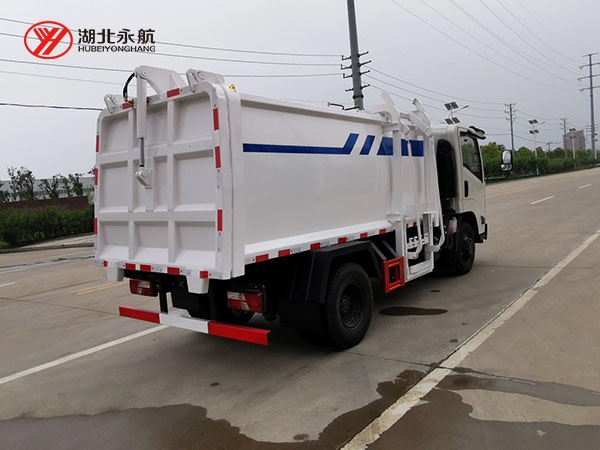采用侧上料机构,并设计具有密封功能的垃圾箱后门,通过推铲对垃圾进行压缩和卸料,可有效保证产品大装载量。