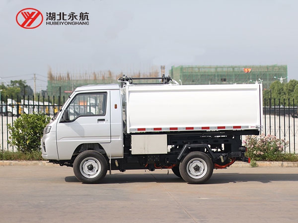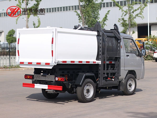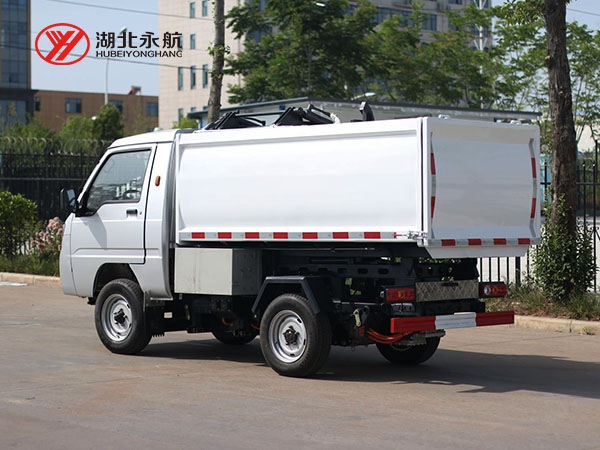 箱体容积3立方,碳钢材质,边板3mm底板4mm,中举油缸,驾驶室外部手动操作和驾驶室内部电控操作,可挂240L国标塑料垃圾桶,后门锁紧为机械锁紧,后门手动开启。