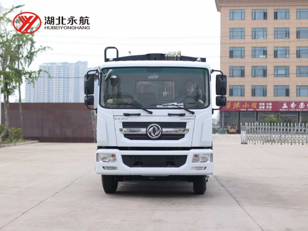采用东风多利卡D9国六底盘,4500mm轴距,2315排半驾驶室,玉柴发动机,法士特6档变速箱, 10.0钢丝胎,前桥4.5T后桥10T德纳桥,250mm双车架,带空调、电动玻璃、中控锁、气刹、ABS、排气制动。