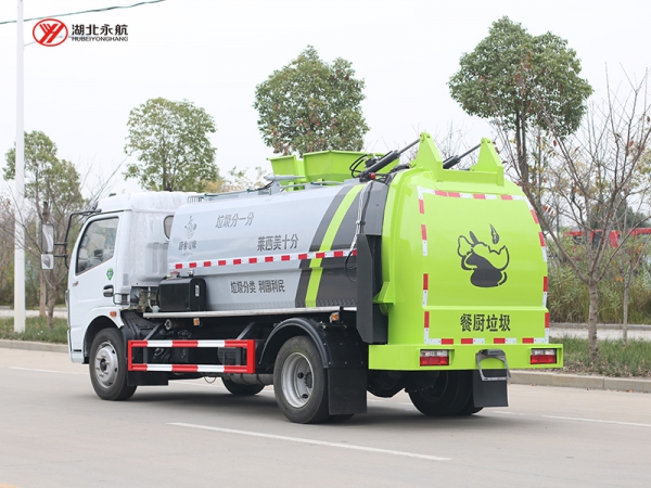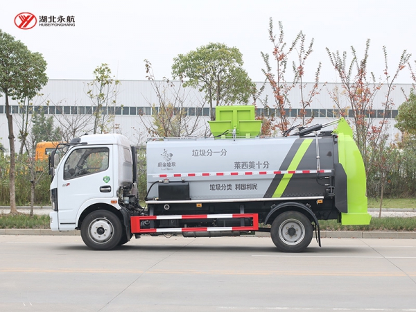 4、箱体尾部导流槽设计,避免卸料时的垃圾飞溅。