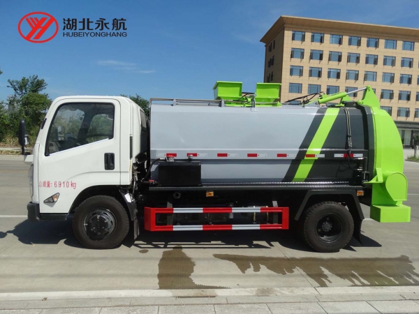 3、进料口标配液压上盖,防止垃圾飞溅。