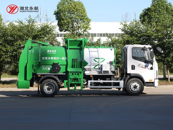 3、进料口标配液压上盖,防止垃圾飞溅。