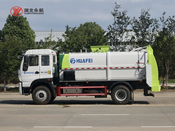 3、进料口标配液压上盖,防止垃圾飞溅。