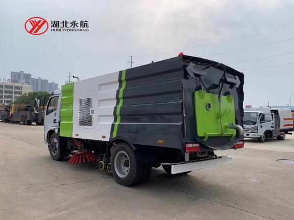 该车集扫路车、洒水车和高压清洗车功能于一体,采用“中置两立扫+中置宽吸嘴(内置高压水喷杆)+左右高压侧喷杆”的结构。