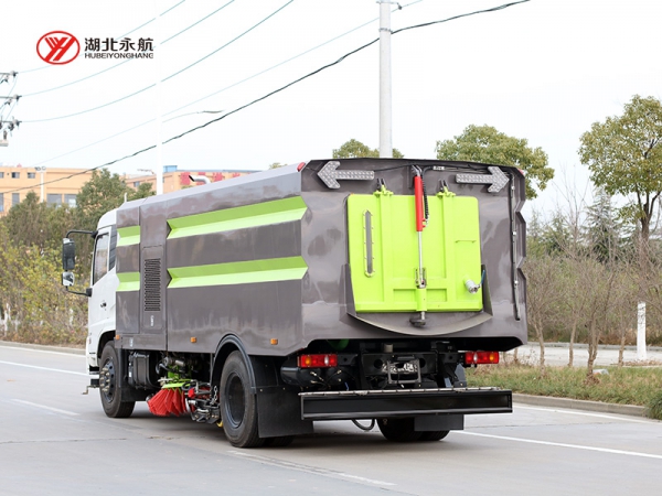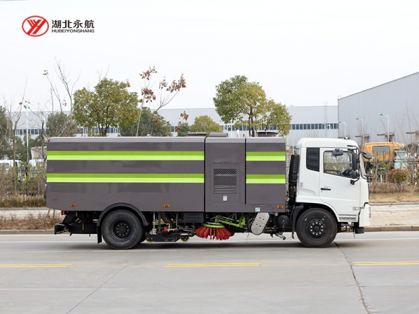 该车集扫路车、洒水车和高压清洗车功能于一体,采用“中置两立扫+中置宽吸嘴(内置高压水喷杆)+左右高压侧喷杆”的结构。