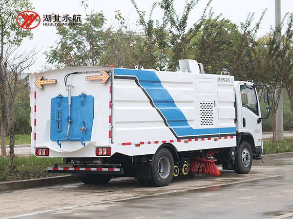 3、具备倒车保护装置,在作业过程中如遇紧急倒车,智能化的控制系统会自动停止作业并收回扫盘、吸盘和侧喷杆;具有防止举升垃圾箱翻车保护;具有检修安全保护。