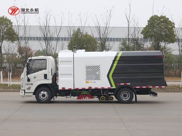 3、具备倒车保护装置,在作业过程中如遇紧急倒车,智能化的控制系统会自动停止作业并收回扫盘、吸盘和侧喷杆;具有防止举升垃圾箱翻车保护;具有检修安全保护。