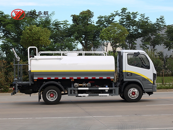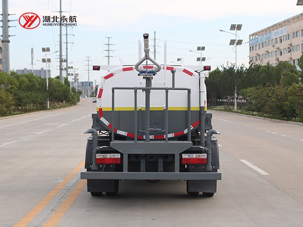 容积5方,安装专用洒水泵,可自动抽水和自动排水,洒水宽度≥10m,洒水炮射程≥18m,垂直吸程≥6m。