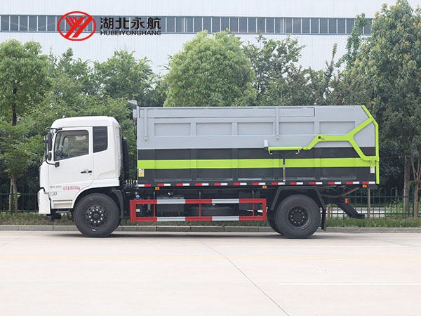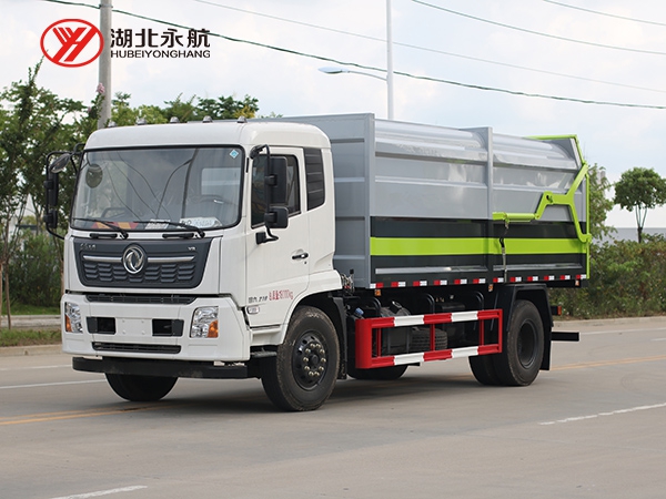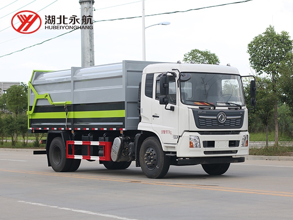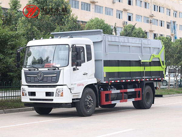方形箱体,顶部有翼展开盖式和全封闭式两种。其中箱体顶部开盖式对接垃圾车主要用于散装垃圾的收运,也有部分用于与大型垂直式垃圾压缩机配套使用,而全封闭式对接垃圾车主要用于与中小型垃圾压缩机配套使用。