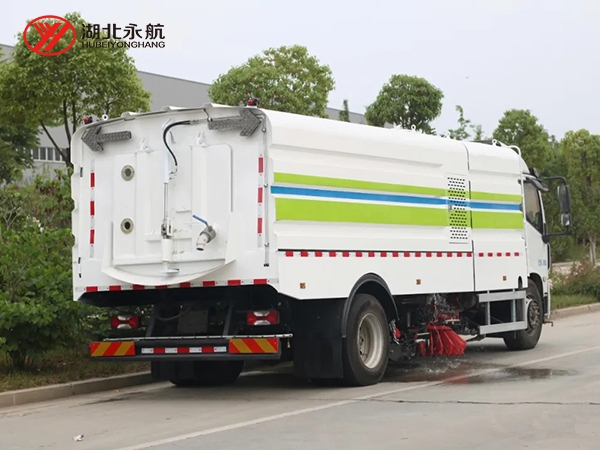 3、具备倒车保护装置,在作业过程中如遇紧急倒车,智能化的控制系统会自动停止作业并收回扫盘、吸盘和侧喷杆;具有防止举升垃圾箱翻车保护;具有检修安全保护。