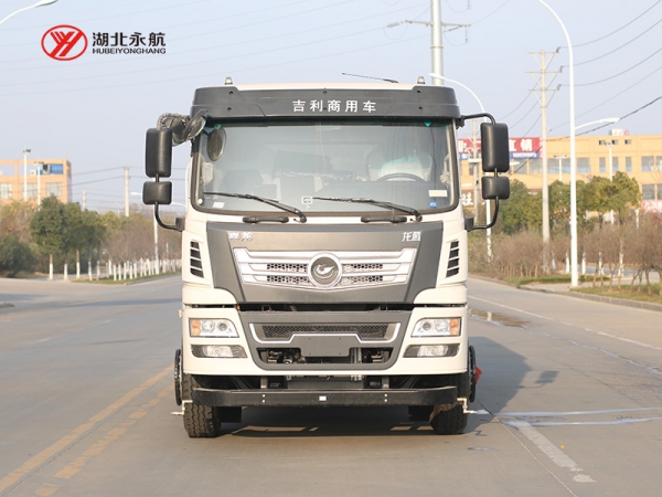 该车集扫路车、洒水车和高压清洗车功能于一体,采用“中置两立扫+中置宽吸嘴(内置高压水喷杆)+左右高压侧喷杆”的结构。