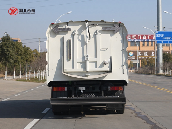 3、具备倒车保护装置,在作业过程中如遇紧急倒车,智能化的控制系统会自动停止作业并收回扫盘、吸盘和侧喷杆;具有防止举升垃圾箱翻车保护;具有检修安全保护。