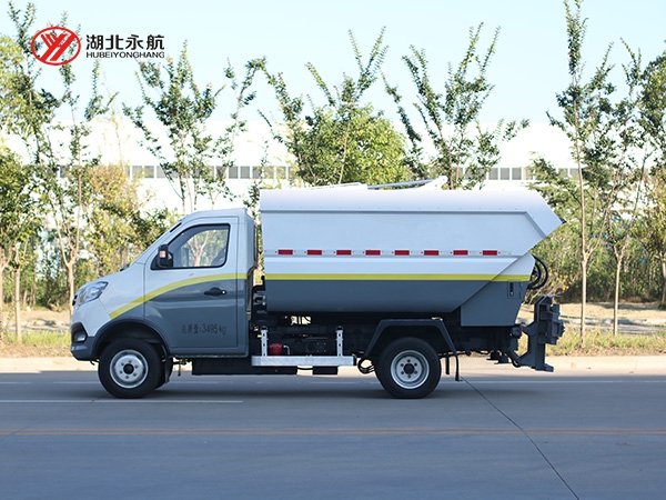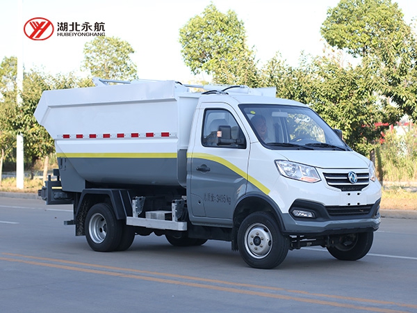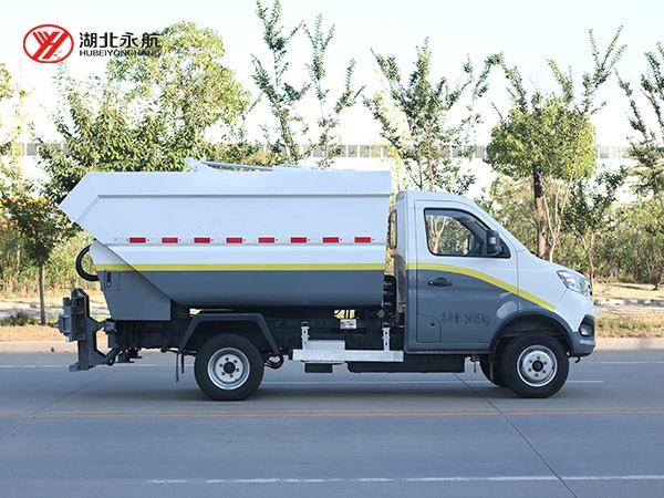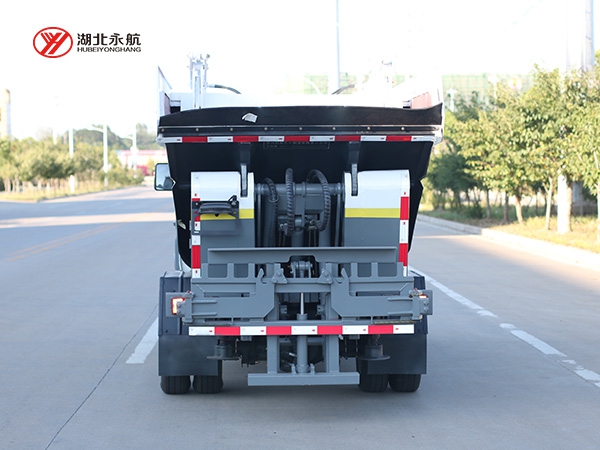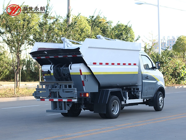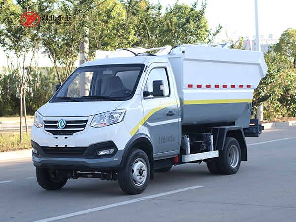 该车采用二类汽车底盘,加装高位倾翻垃圾箱、翻桶机构、刮板压缩装置、液压系统和电控系统,整车外形美观、驾驶舒适、操纵便捷、机动灵活。