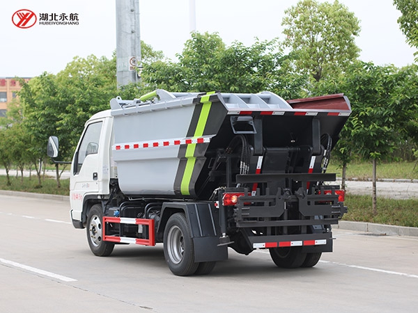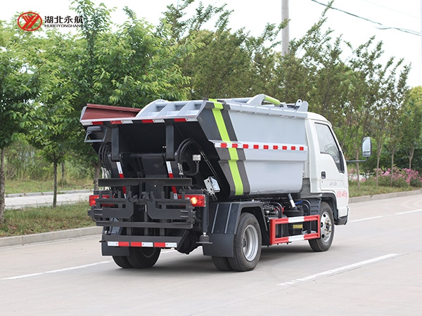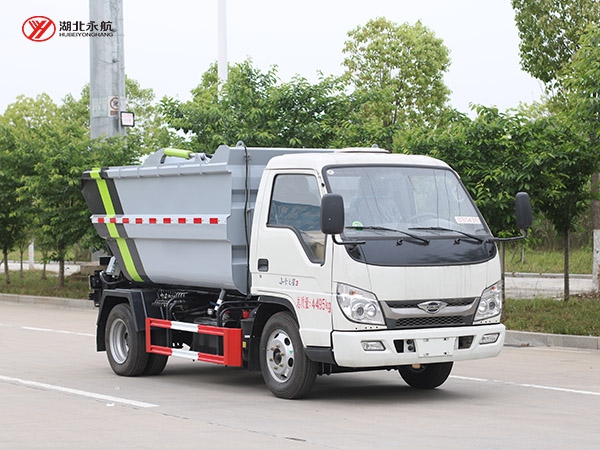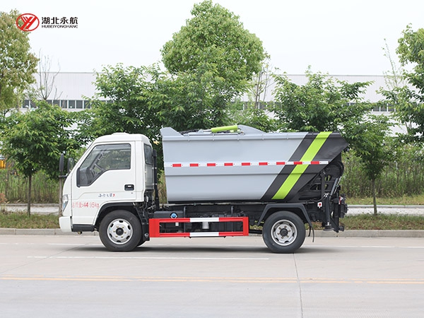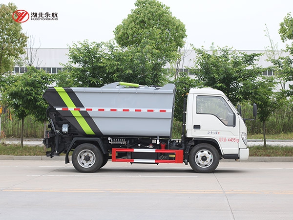 该车采用二类汽车底盘,加装高位倾翻垃圾箱、翻桶机构、刮板滑板压缩装置、液压系统和电控系统,整车外形美观、驾驶舒适、操纵便捷、机动灵活。