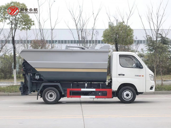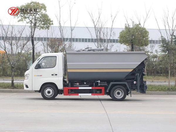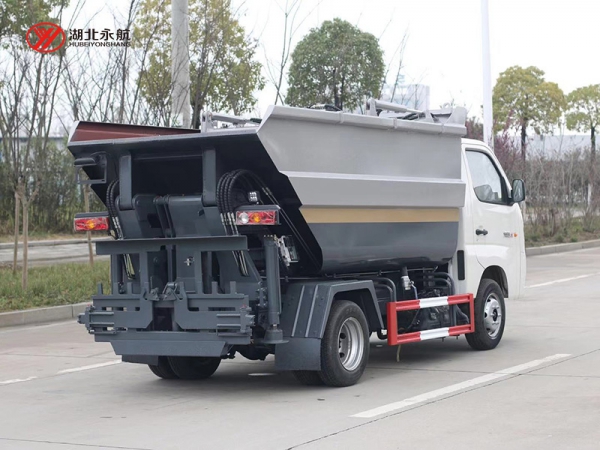 该车采用二类汽车底盘,加装高位倾翻垃圾箱、翻桶机构、刮板滑板压缩装置、液压系统和电控系统,整车外形美观、驾驶舒适、操纵便捷、机动灵活。