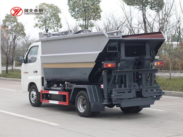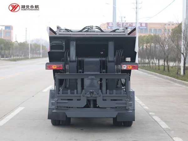 2、新式后翻转上料机构:单次上料循环时间短,运行效率高 ,在狭窄街道和小区作业更加方便。