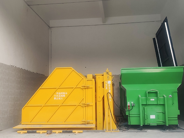*固定安装在垃圾站内,可以进行垃圾的临时存储,也可以实现一斗配多箱,进行不间断轮换作业,提高垃圾收集效率。