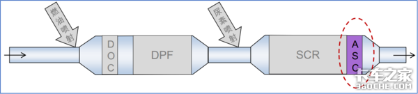在ASC系统当中,SCR反应中多余的氨气会与氧气继续反应,生成氮氧化物,同时将生成的氮氧化物与多余氨气继续反应,进而生成无害的氮气排出。是一个取之于SCR,用之于SCR的装置。