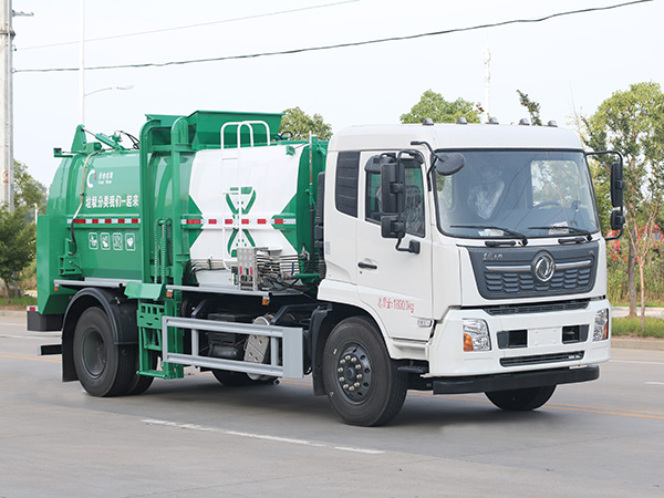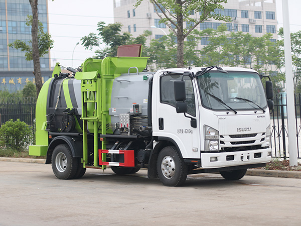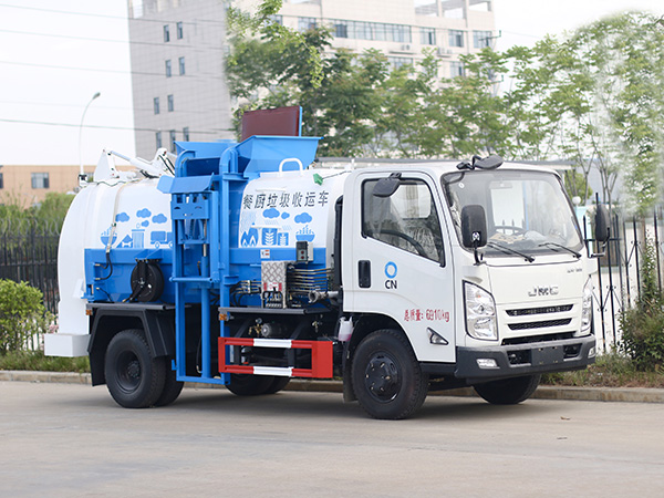 我公司生产的餐厨垃圾车具有整体外形美观、较高的性价比、安全可靠、驾驶便捷的特点。该系列专用车是我公司成熟产品,上装由箱体、后门总成、后门开启机构、密封锁紧机构、推板机构、挂桶提升机构及操纵机构等组成。