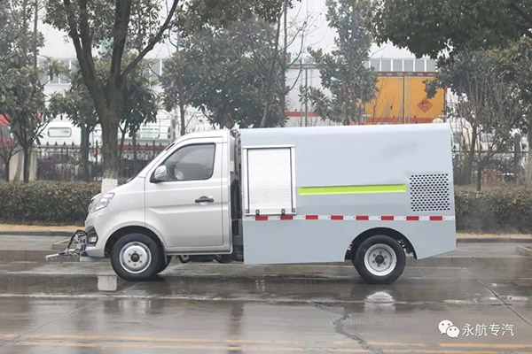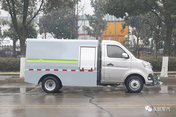 路面养护车是我公司根据市场需求开发的一款清洗城市人行道、非机动车道、摊点油污地面及城市牛皮癣的新型多功能清洗车,具有外形美观、驾驶舒适、操作简单、机动灵活、维修便利、噪声小、可靠性高等特点。这款车型采用长安底盘改装,加装高压清洗机系统、整体式水箱(含清水仓、工具仓、动力仓)、前喷水架及定点清洗装置、电气系统、高压水路及卷盘装置、辅助清洗推车等部件。