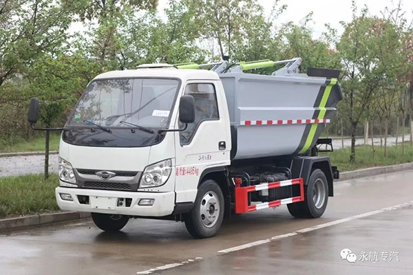 上装配置:容积约4方,边4mm底4mm,湖南鸿辉电磁换向阀,长源液压油泵,驾驶室内外电控操作。双油缸举升卸料,车辆尾部两侧各一个垂直支腿,箱体顶部设置有刮板结构,并具有压缩功能,尾部可挂1个240L或120L塑料桶。可与压缩垃圾车、移动站完美对接。