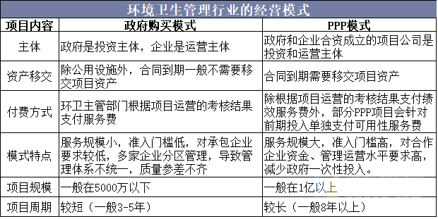环境卫生管理行业的经营模式主要有两种:一是地方购买服务模式,二是PPP合营模式。购买服务一般由环卫主管部门作为购买主体,按照采购法和招投标法的有关规定,采用公开招标、邀请招标、竞争性谈判、单一来源采购等方式确定承接主体。签订的合同服务期限通常在5年以内,执行过程中每一年或者到合同期结束根据服务绩效情况决定是否续签。通过**购买服务实施环卫市场化,基本不涉及投资,实质是购买企业提供的清扫保洁、垃圾收运服务,程序相对简单。