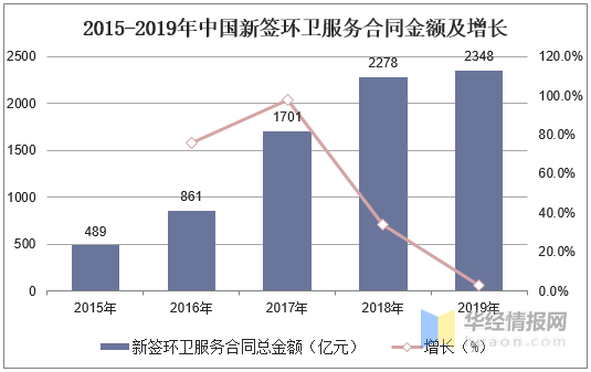 2016年全国新签环卫服务年化总金额为248亿元,同比增长80%。2018年年化总金额创新高,2017-18年年化总金额达到321/482亿元,2019年新签环卫服务年化总金额达550亿元。