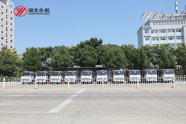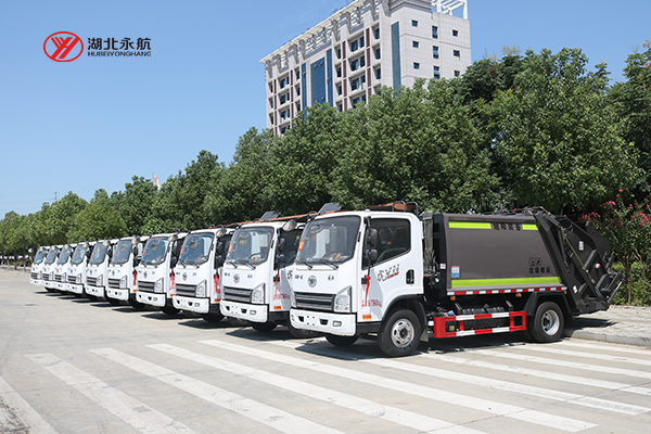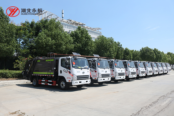山东客户批量压缩式垃圾车准备发车